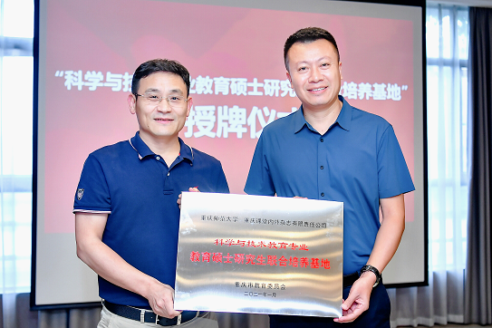会上,重庆师范大学研究生学院院长李荣教授还为双方共同申报、重庆市教委批准的“科学与技术专业教育硕士研究生联合培养基地”进行了授牌。